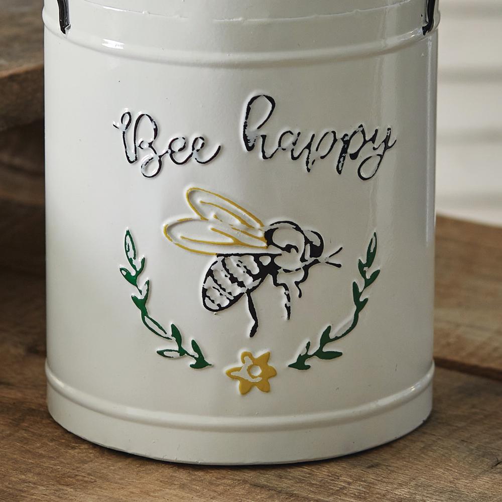This fun jug is great for displaying your favorite florals. It's made of metal and has wooden handles.