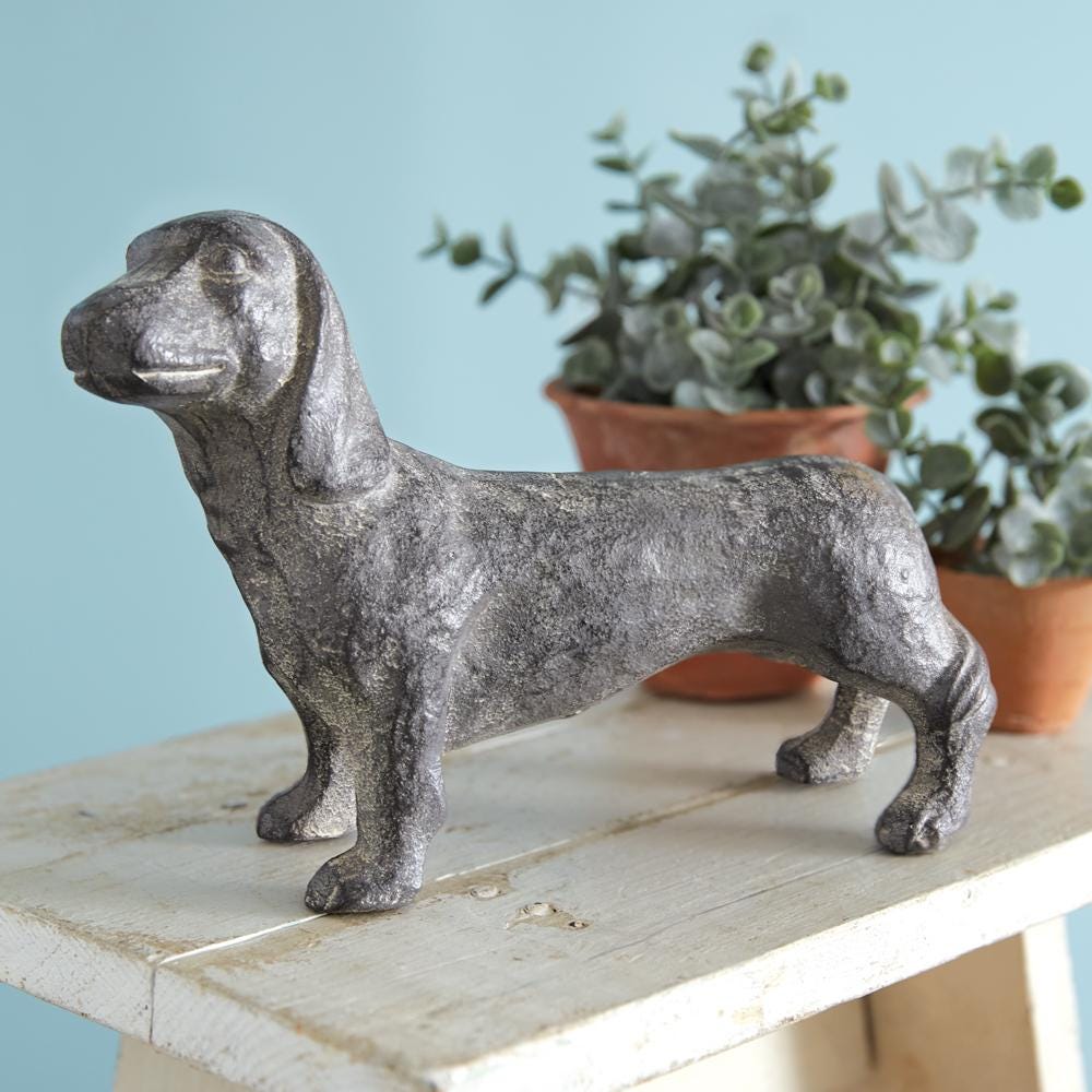 Celebrate the charm of man's best friend with this Cast Iron Dachshund Figurine. Perfect for dog lovers, this beautifully detailed piece adds a rustic touch to your home or garden decor. Crafted from sturdy cast iron, it features a timeless design that complements farmhouse, vintage, or rustic themes.