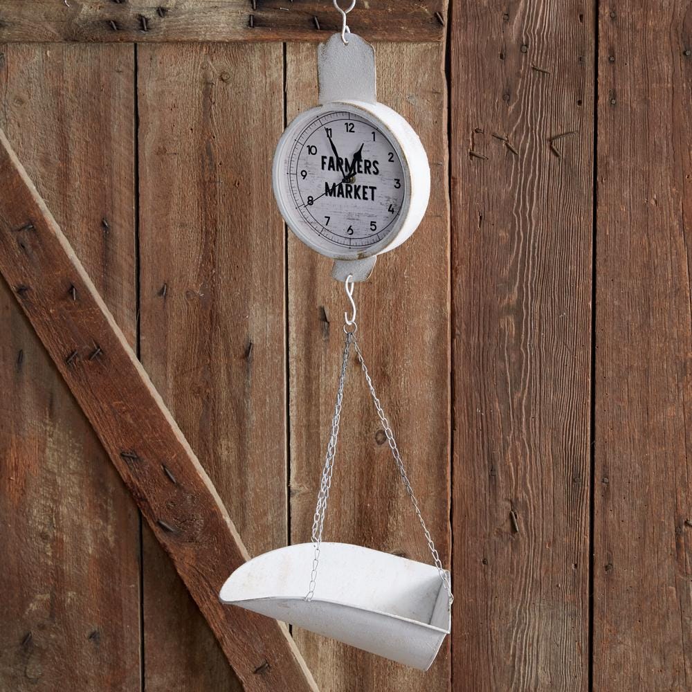 Our decorative scale will have you reminiscing about the old country store. While this scale doesn't measure weight, it can tell time! Display fruits or veggies inside to complete the look. Clock requires one AA battery, not included.