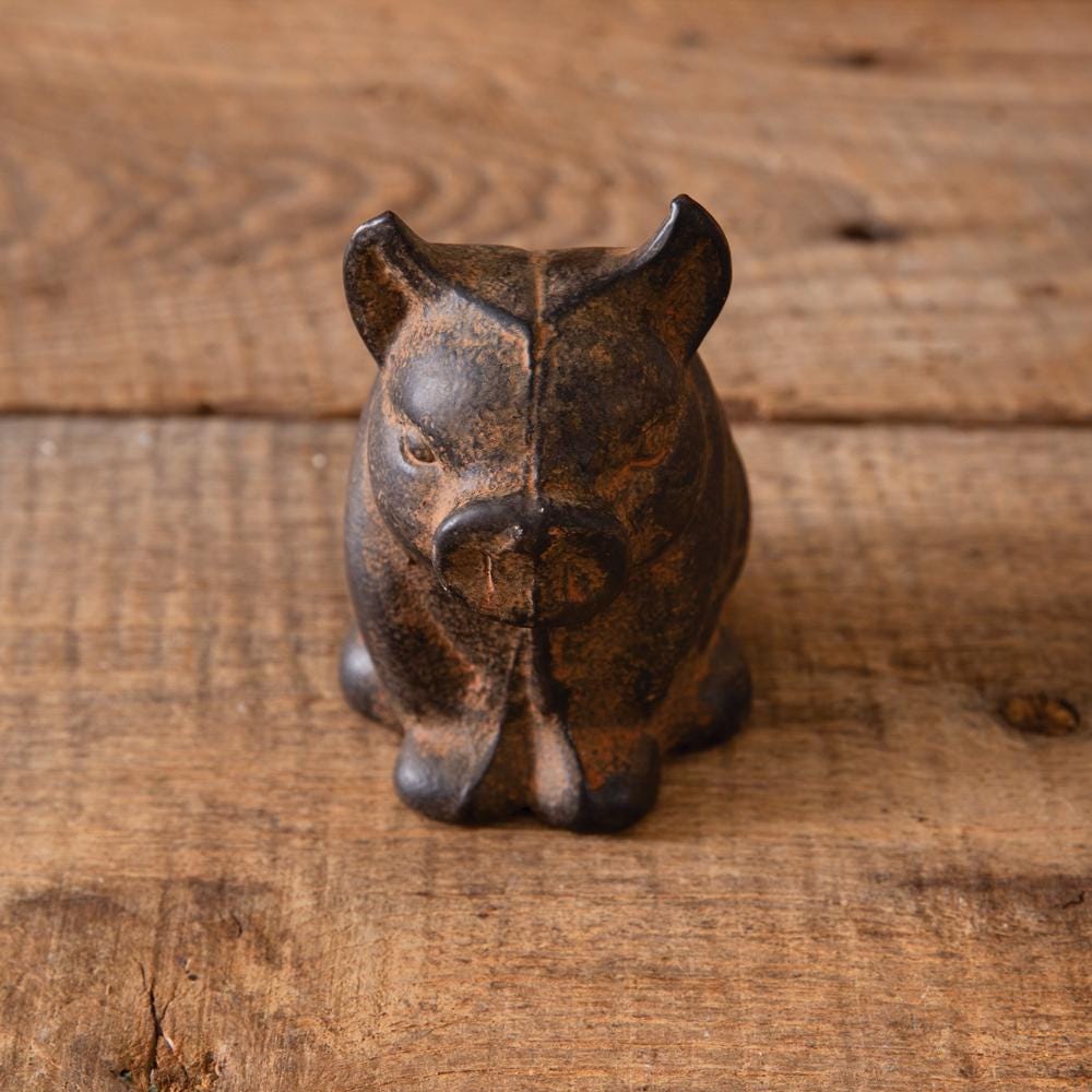 Embellish your tabletops with a sweet farmhouse friend. This pig is fashioned of cast iron and has a rust like finish. Item is hollow.