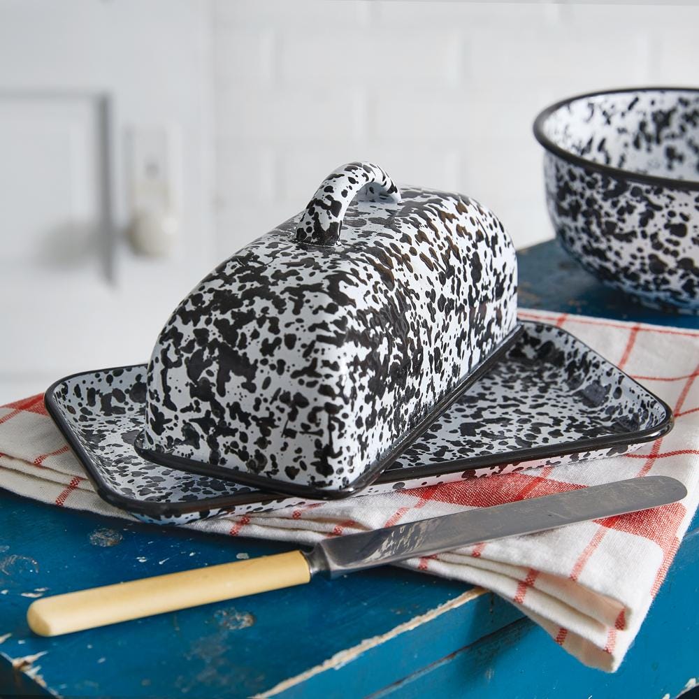 Inspired by vintage enamel finds, our enamelware features a splattered black and white finish, the perfect addition to a country kitchen. True to tradition, our enamelware line is created to last for generations to come. This item is food safe. Hand wash only.