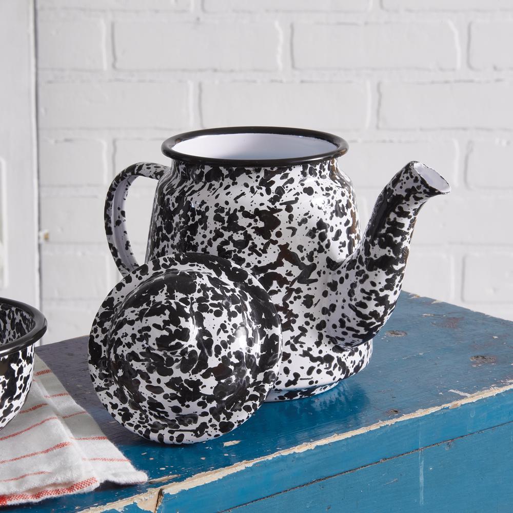 Inspired by vintage enamel finds, our enamelware features a splattered black and white finish, the perfect addition to a country kitchen. True to tradition, our enamelware line is created to last for generations to come. This item is food safe. Hand wash only.