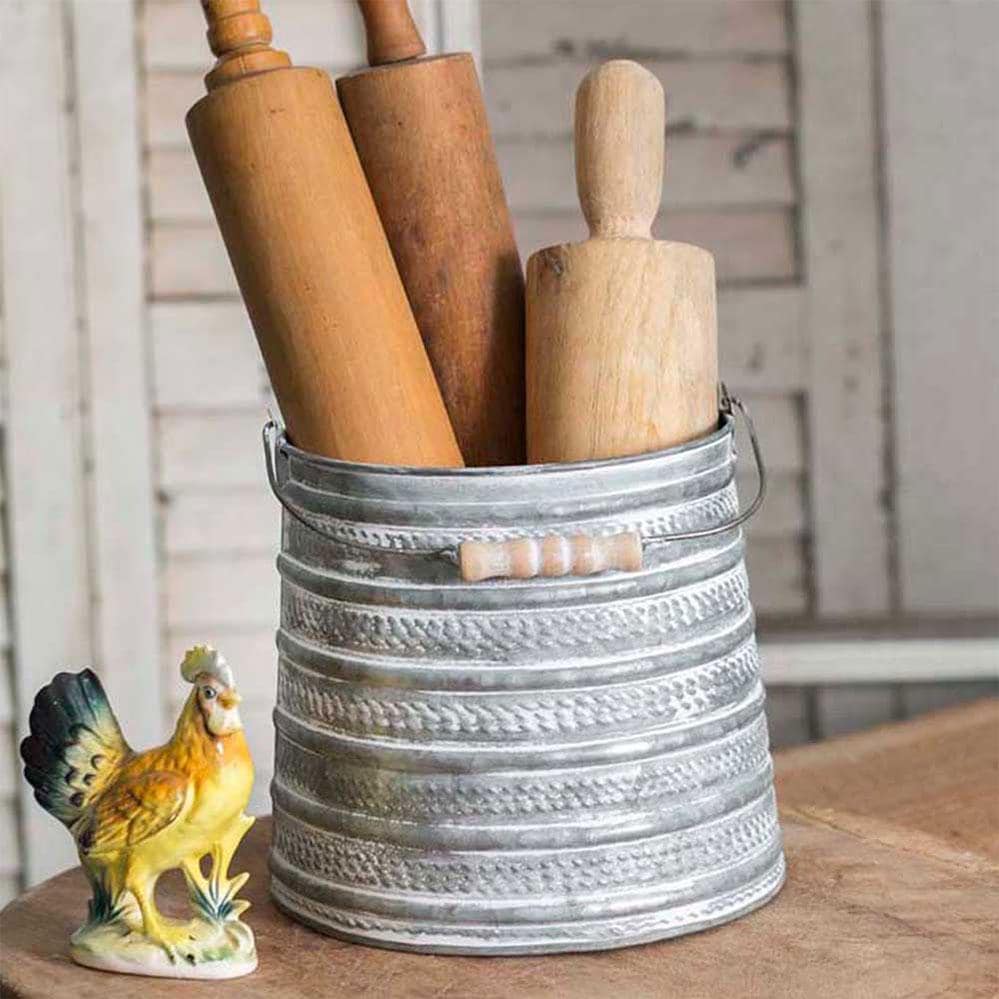 This versatile bucket adds character to indoor or outdoor spaces, blending effortlessly with rustic, nautical, or vintage themes. A perfect choice for those seeking timeless charm in their home decor. Rolling Pins not included.