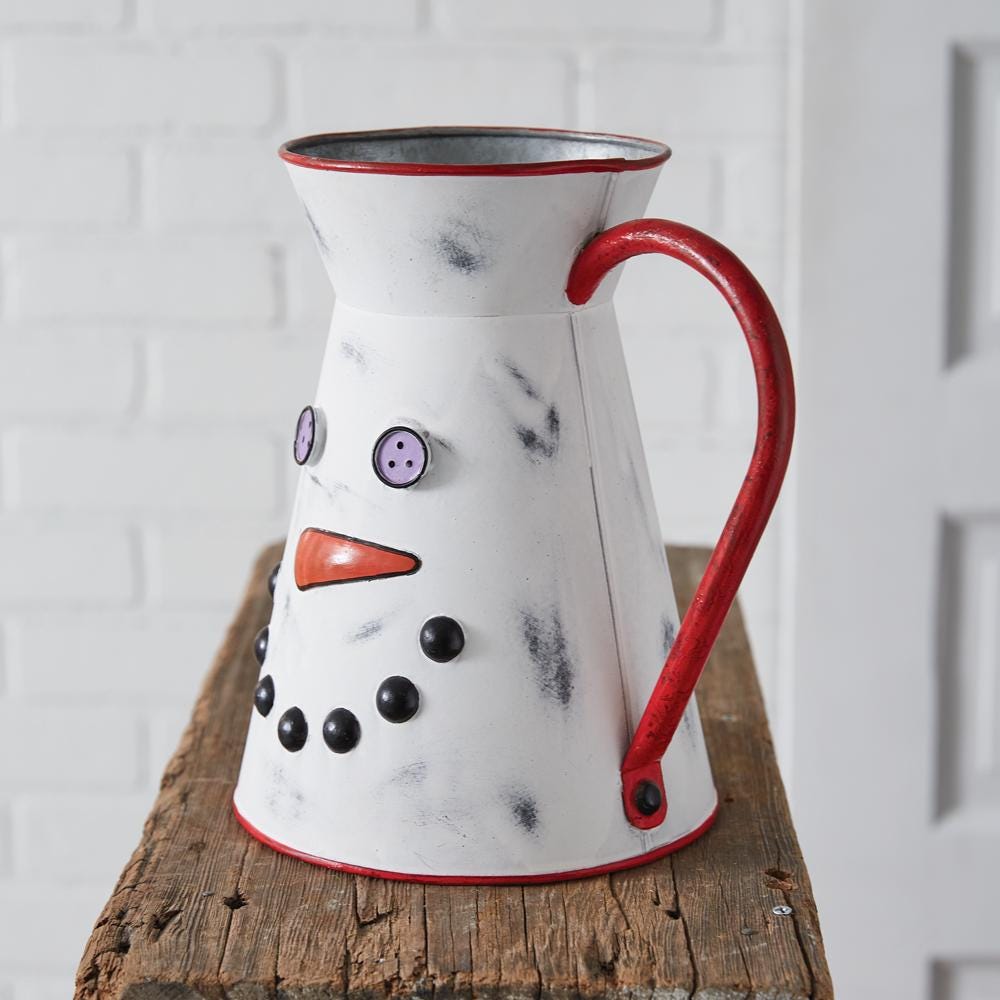 Crafted with meticulous attention to detail, this wintry pitcher brings the spirit of the holidays to your table. Whether you're adding a touch of merriment to your decor or featuring holiday florals, our Wintry Snowman Pitcher is the ideal choice. This item is crafted from metal and is not food-safe or watertight.